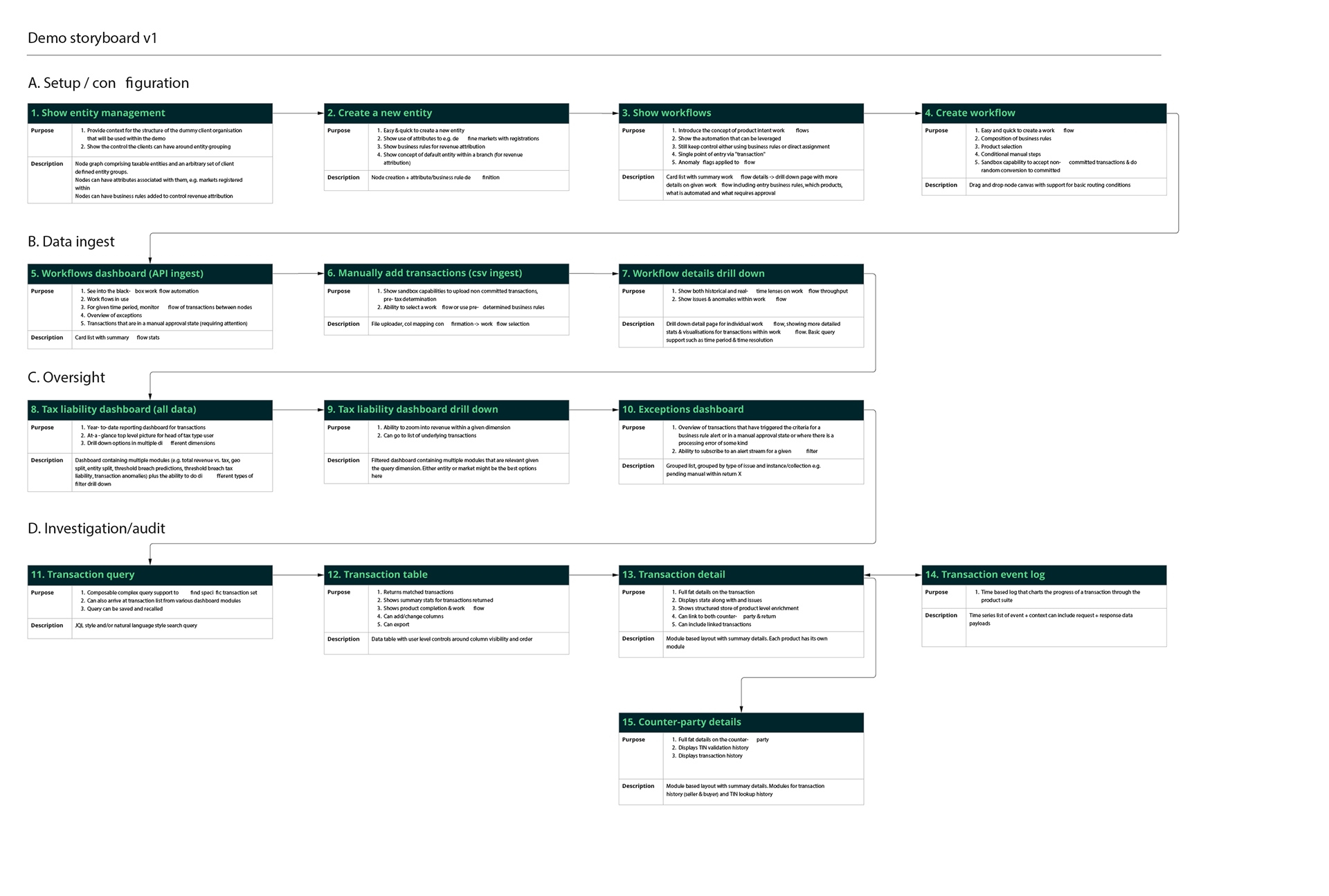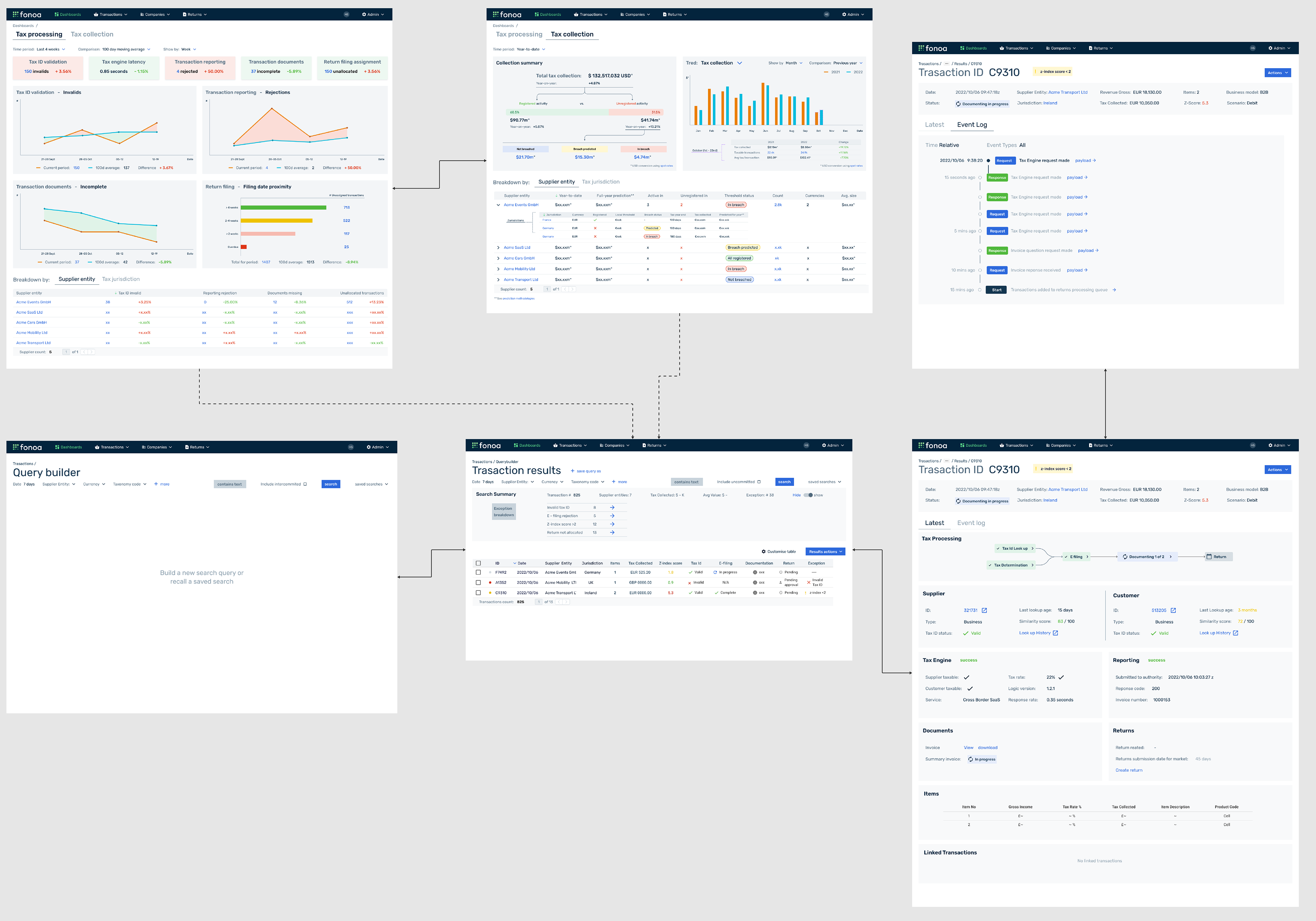 On the UX side while Fonoa does provide a unified operations dashboard app, in practice the only unification across products is a single-sign-in and common design system. Each product occupies a separate space within the app. Each also has an individual approach to data naming (due to API inconsistencies), content hierarchy and interaction patterns. However most troubling from a strategic point of view is that the app provides little value-add to users beyond displaying lists and details for individual operations. In effect the product experience is that of a basic calculator which performs well but does not provide any insights or top-down outcome awareness from the data in aggregate.