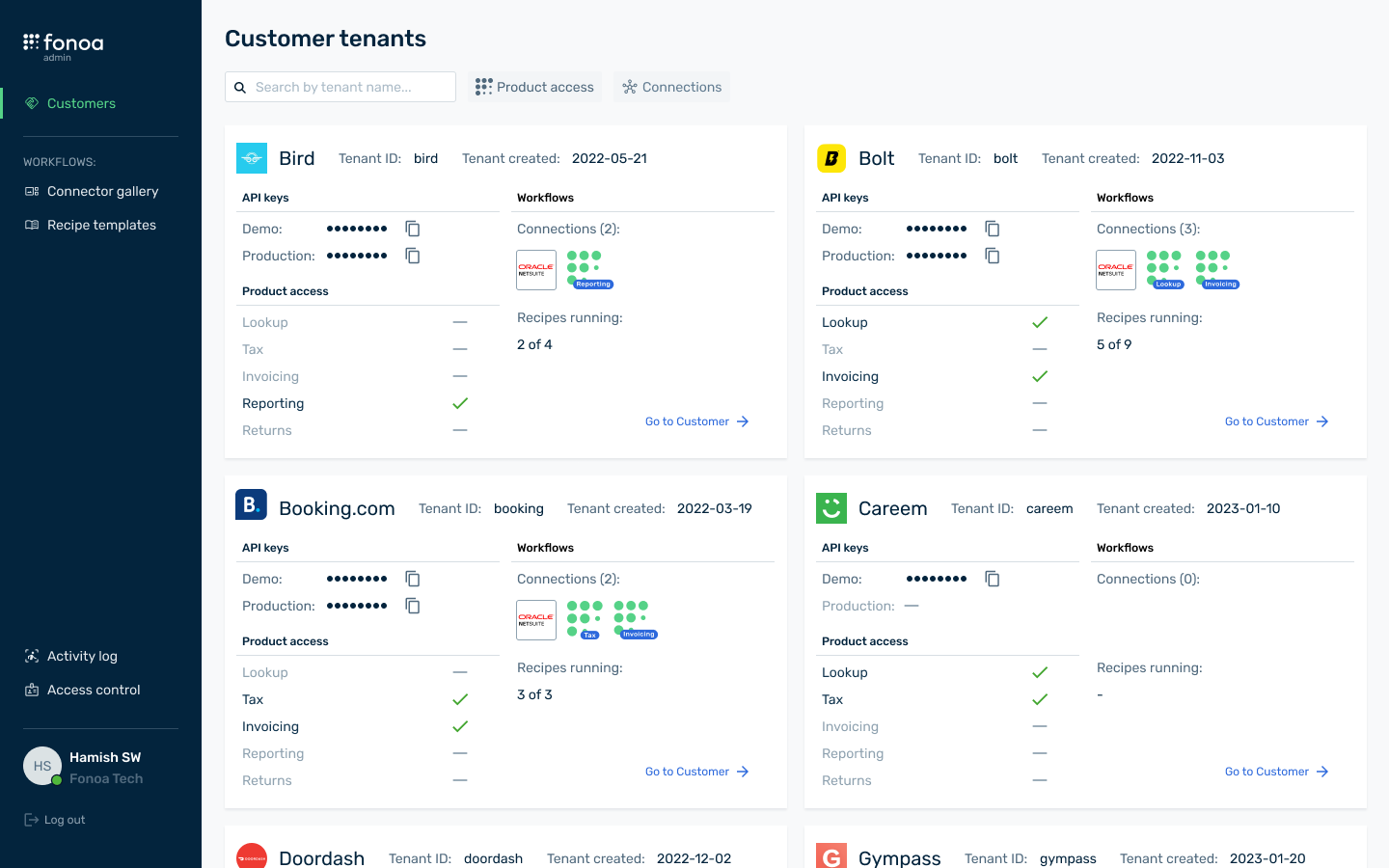 Fonoa's products are used by tax and finance teams within medium to large size enterprises. These teams are cost centres, which unlike revenue generating teams, invariably do not have standing engineering resources to conduct API integrations. While each of Fonoa's products offer conceptually simple APIs to integrate with, the challenge becomes more about providing the Fonoa APIs with the right data and then processing the response. Given that each product has a separate client facing API, the effort to integrate multiple products increases linearly with minimal integration economies available.